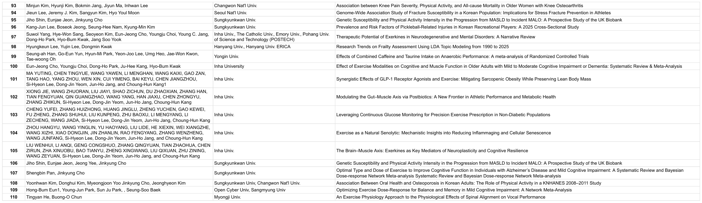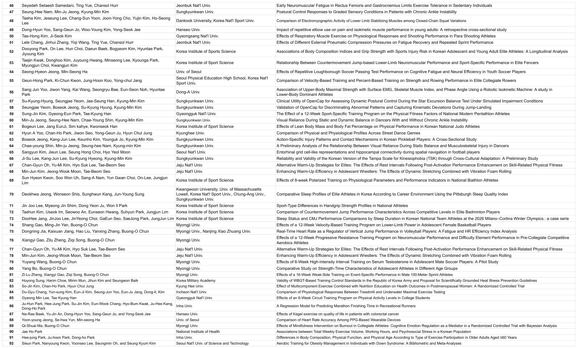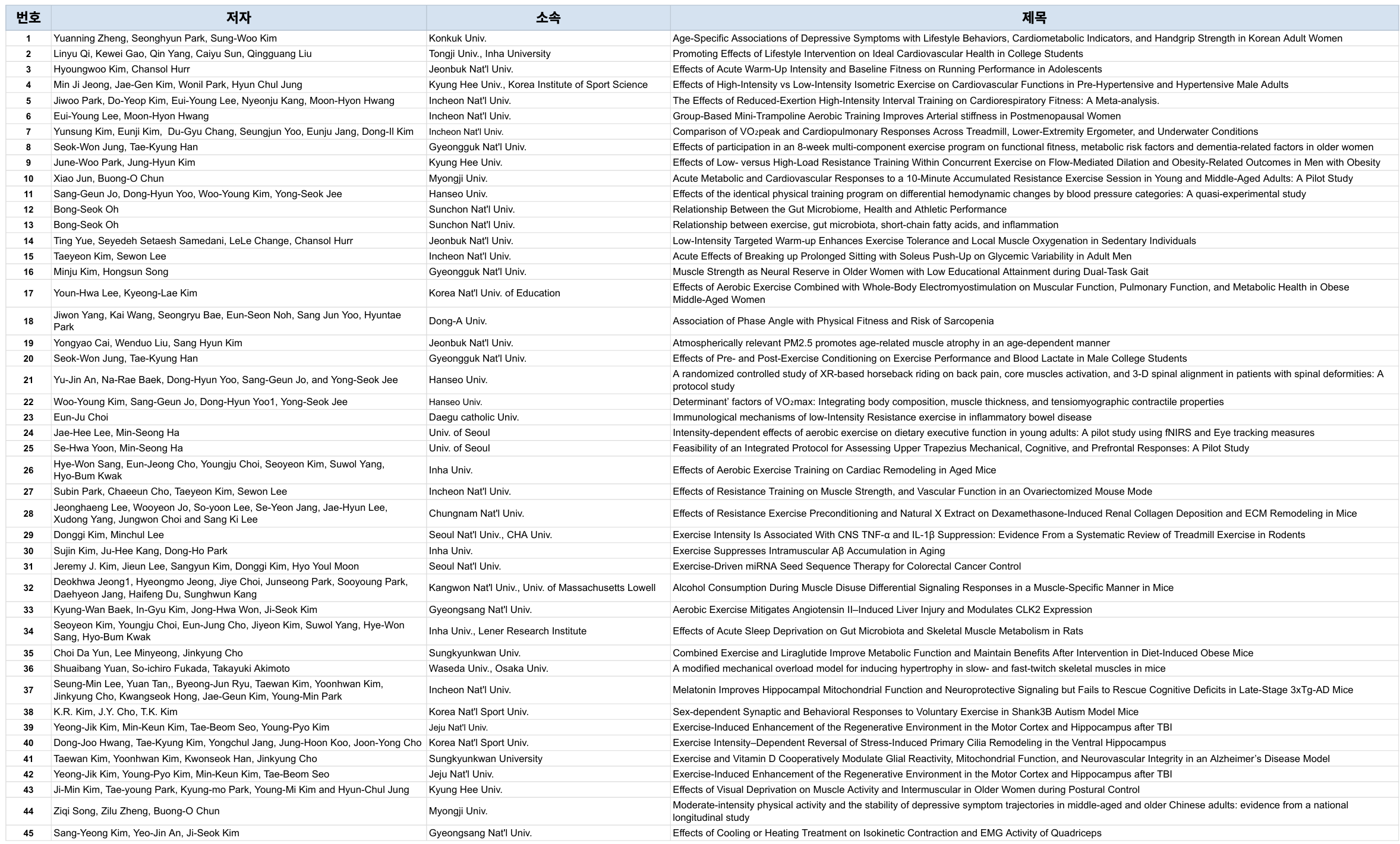 * 한국운동생리학회 포스터 발표 등록자 명단