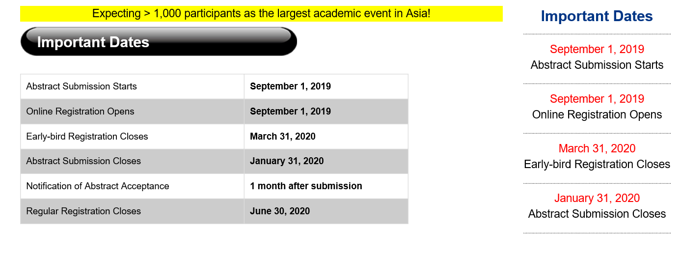 초록제출 : 2019년 9월 1일~ 2020년 1월 31일