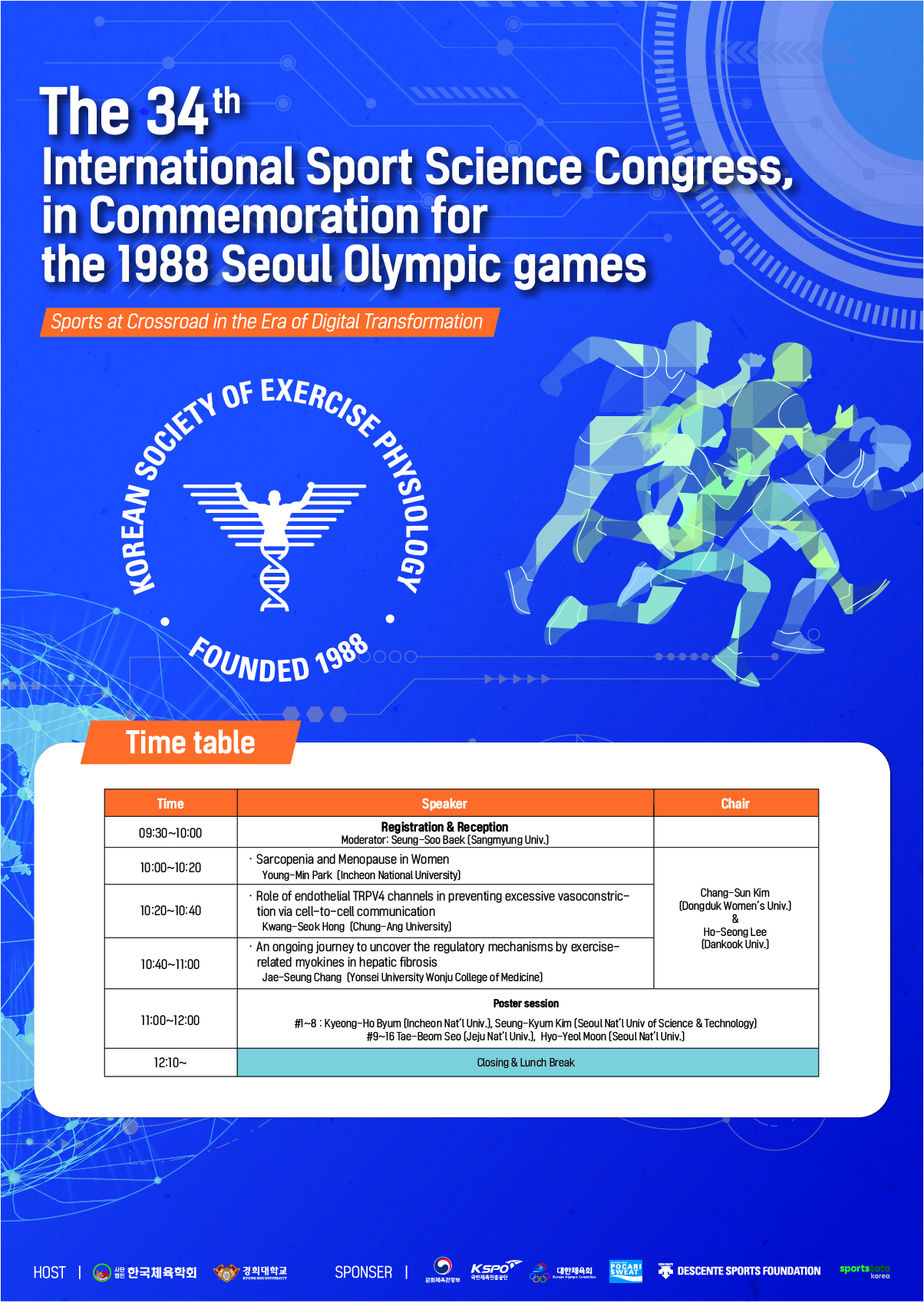 제34회 88서울올림픽 기념 국제 스포츠 컨퍼런스 한국운동생리학회 학술대회 일정 안내