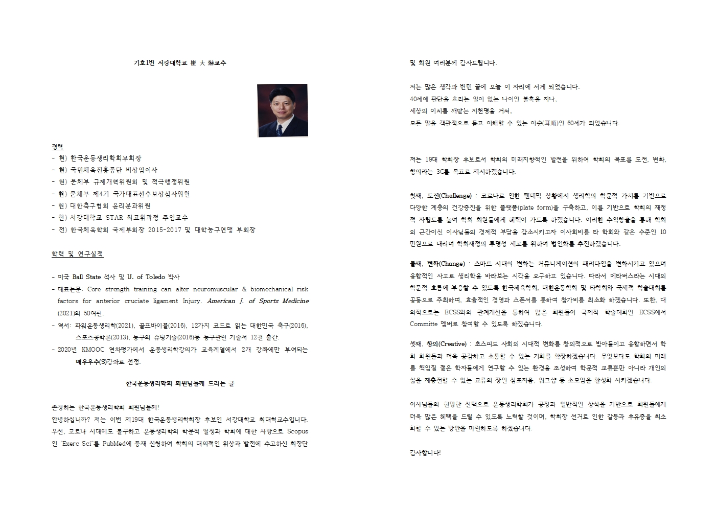 발전하는 한국운동생리학회 19대 회장 선거를 위해 소중한 한 표를 행사해 주시기 바랍니다.
