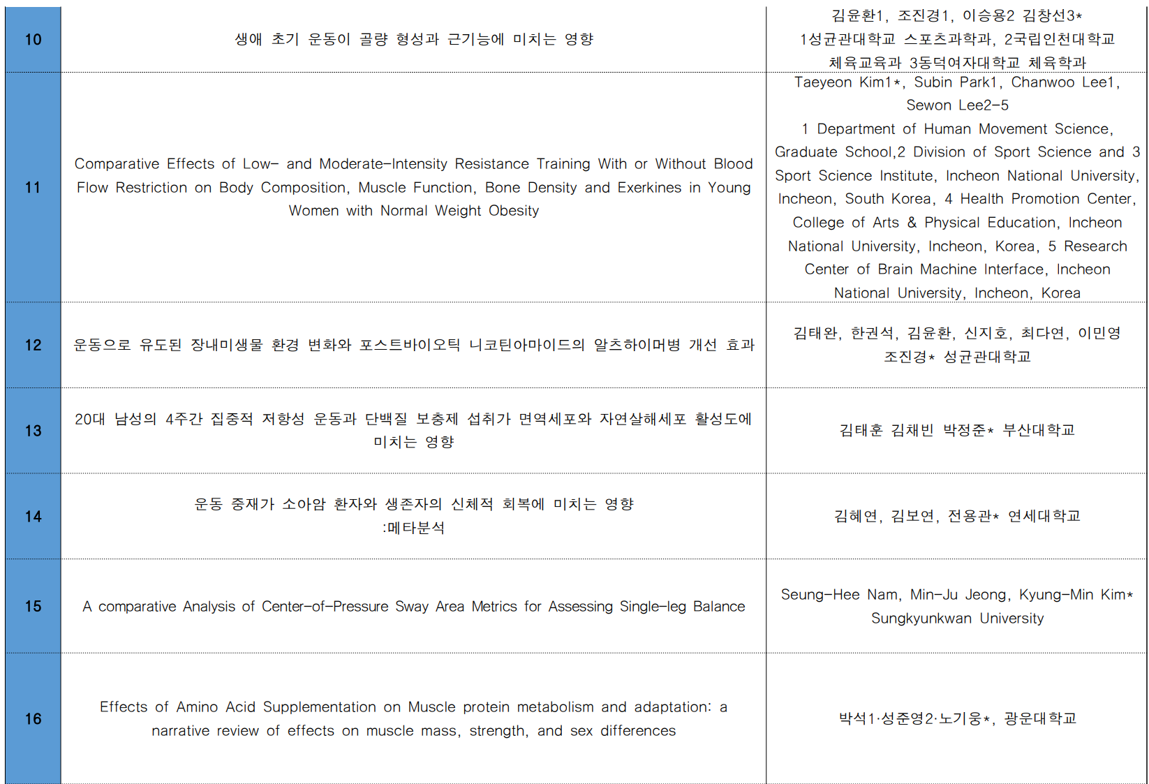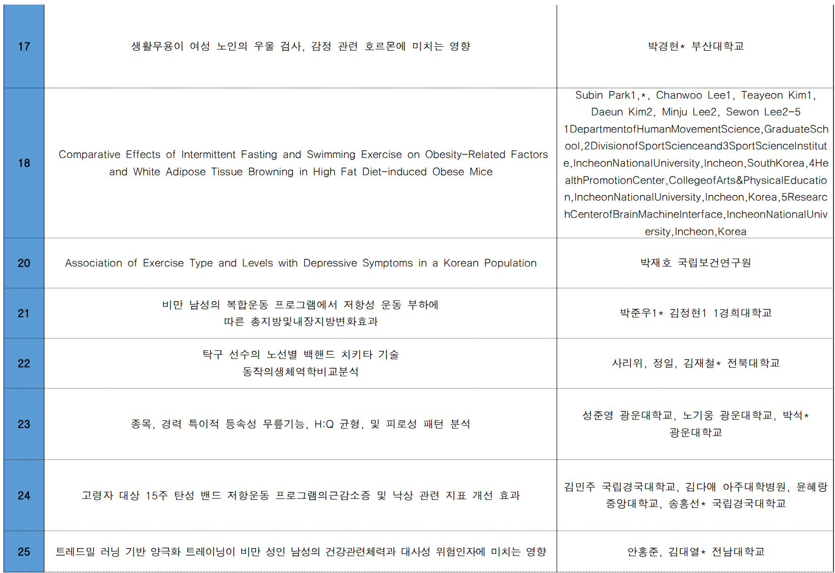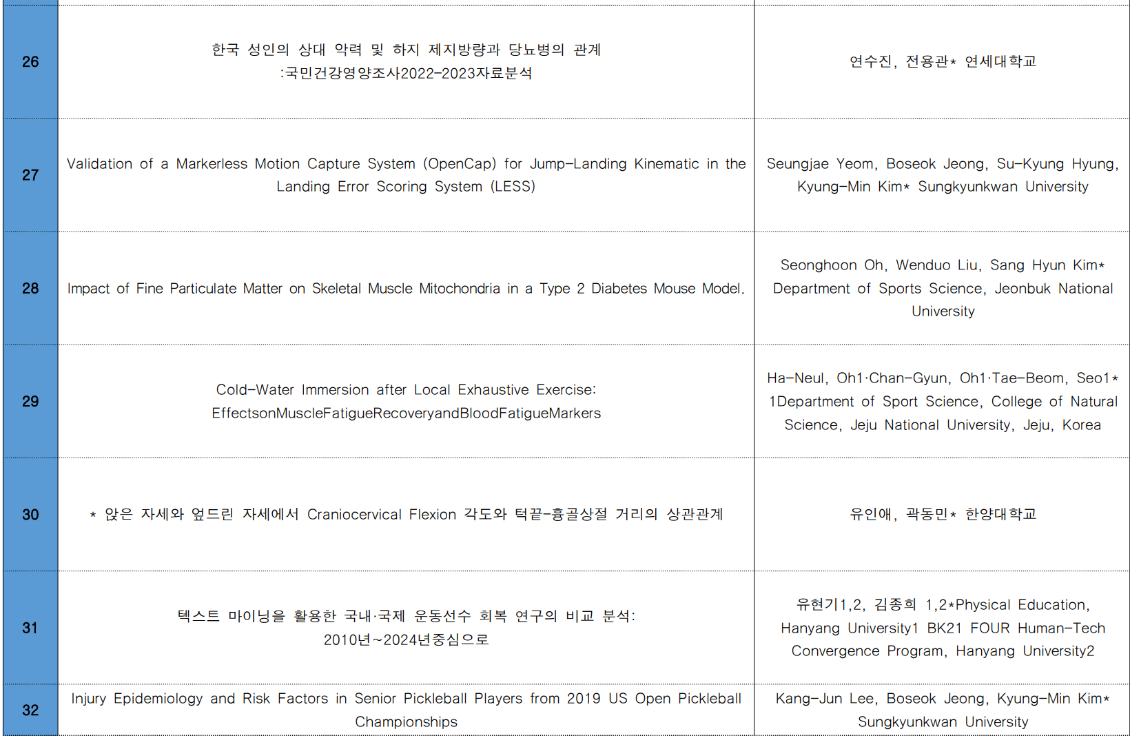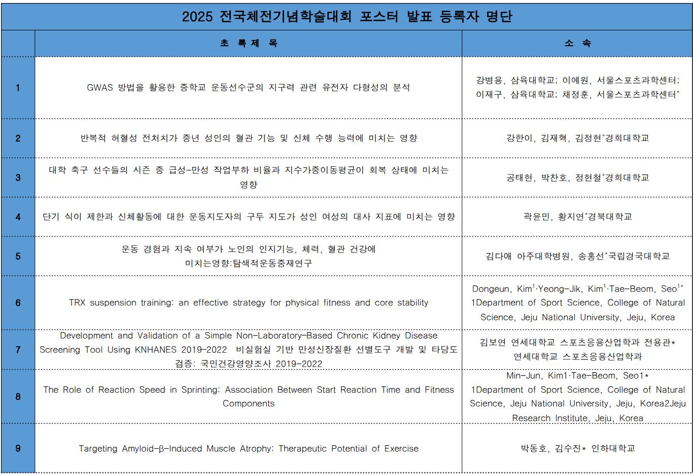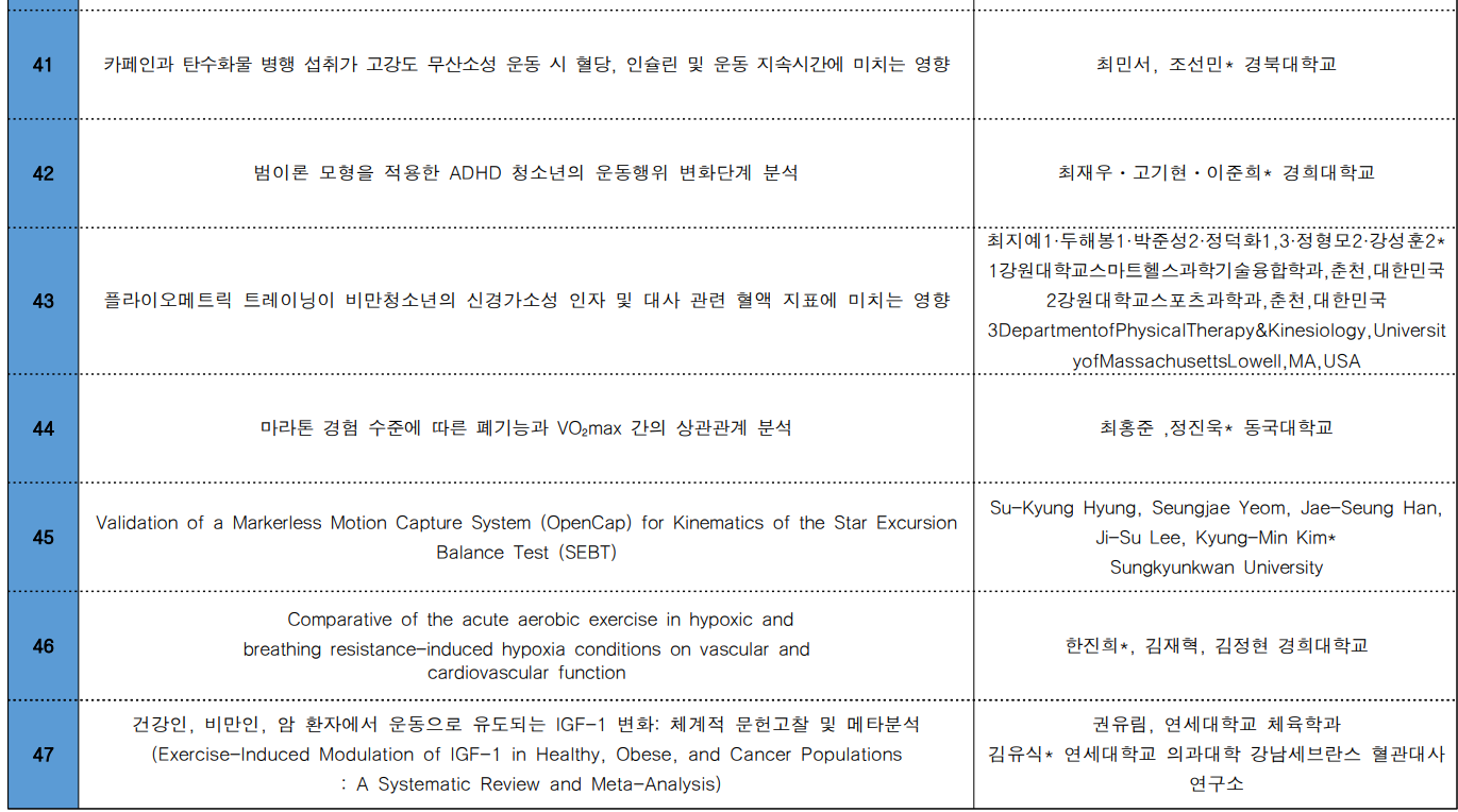 이에, 한국운동생리학회 포스터 발표 등록자 분들의 명단을 게재하오니 확인 부탁드립니다.
