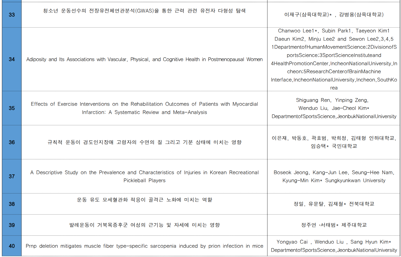 1. 한국운동생리학회 포스터 발표 등록자 명단