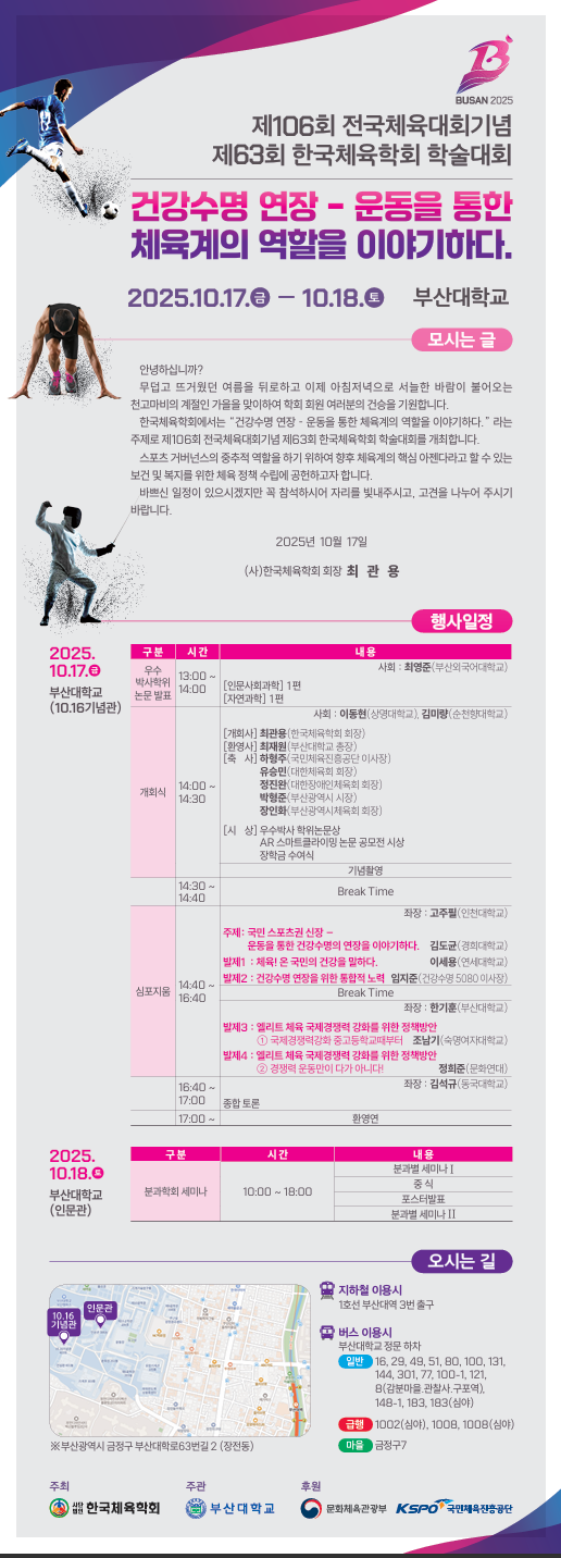 1. 전국체전기념 학술대회 : 17일(금) 한국체육학회 프로그램 안내