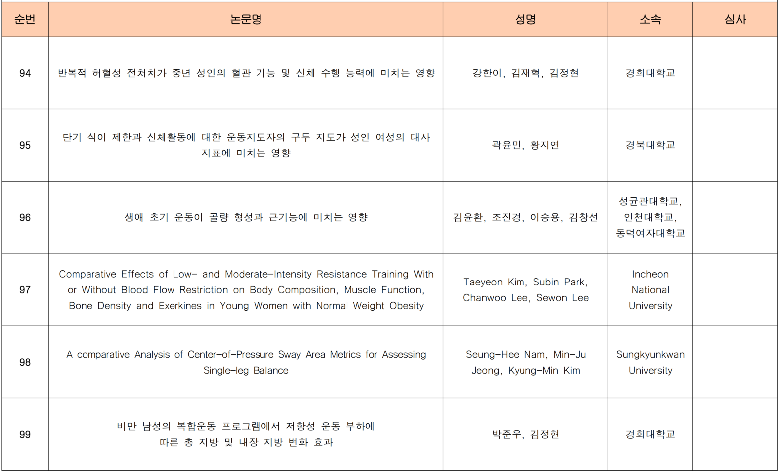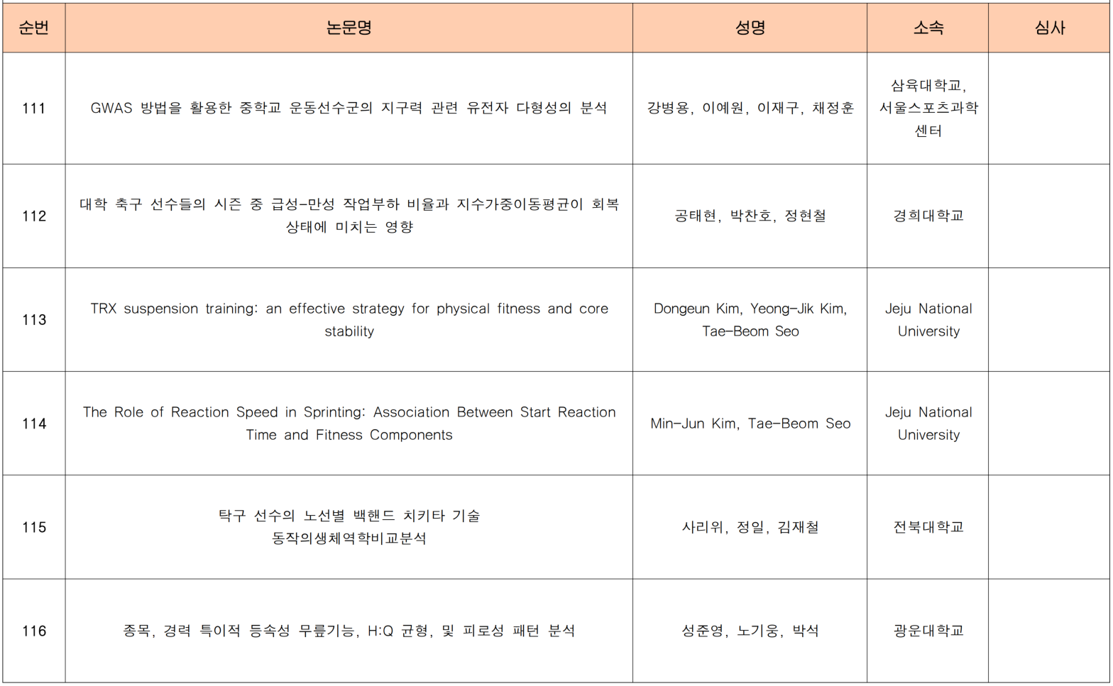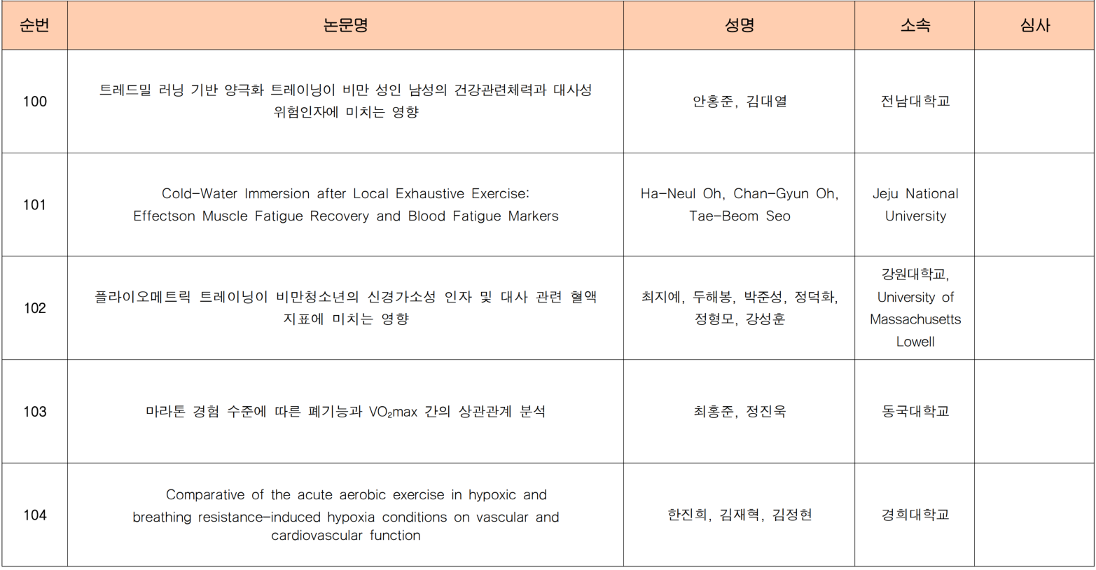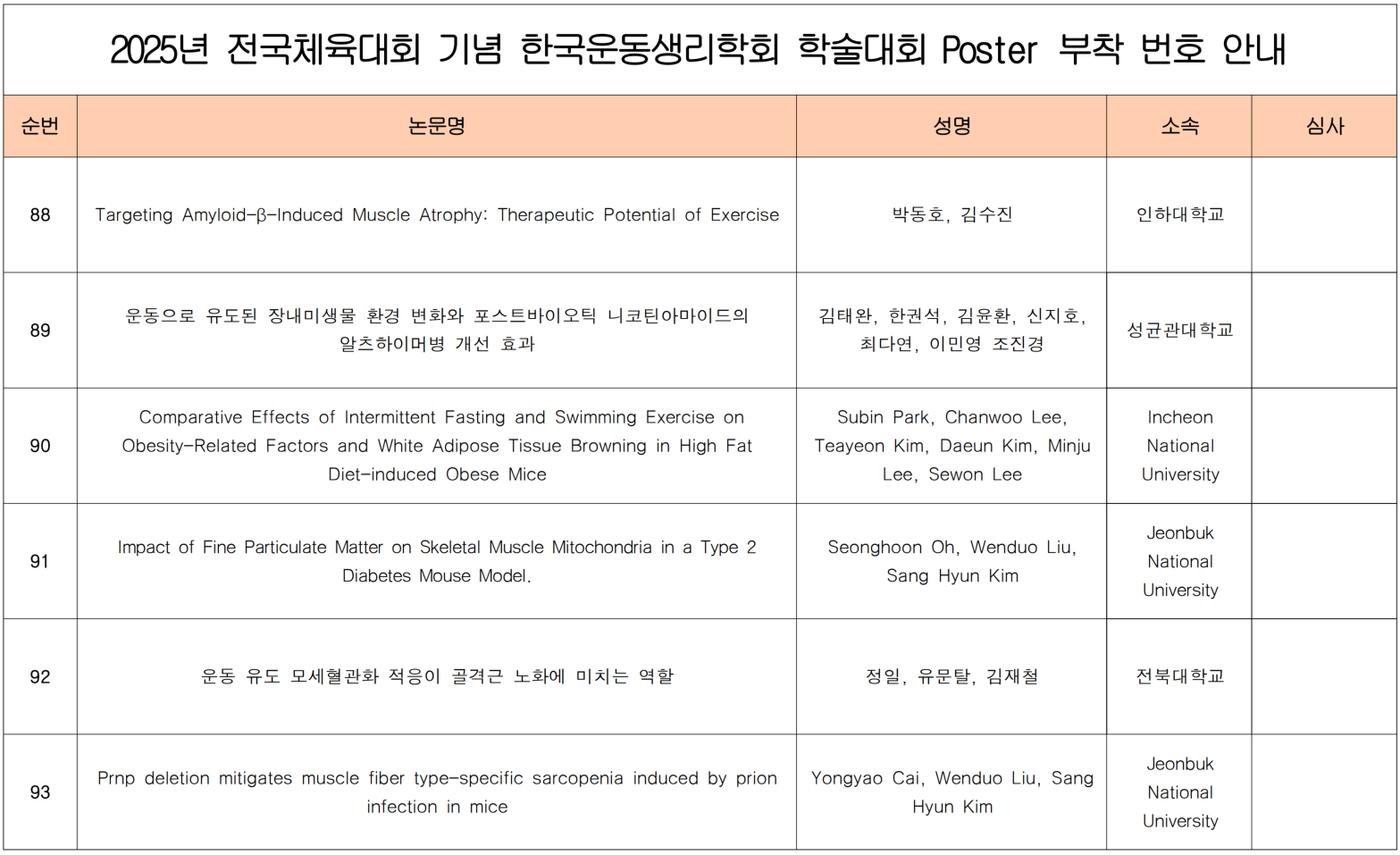 2.3. 전국체전기념 학술대회 : 18일(토) 한국운동생리학회 포스터 부착 번호 안내