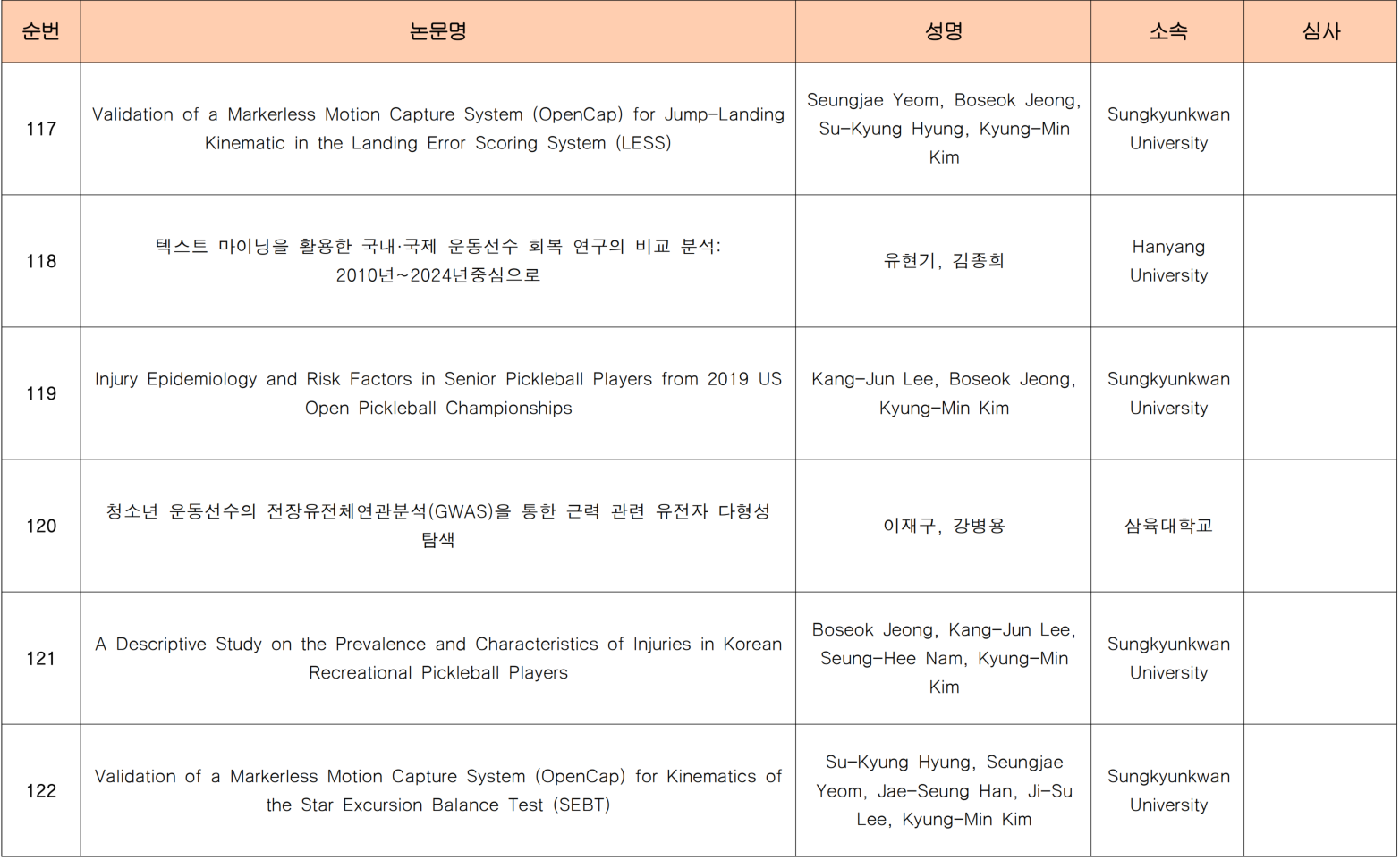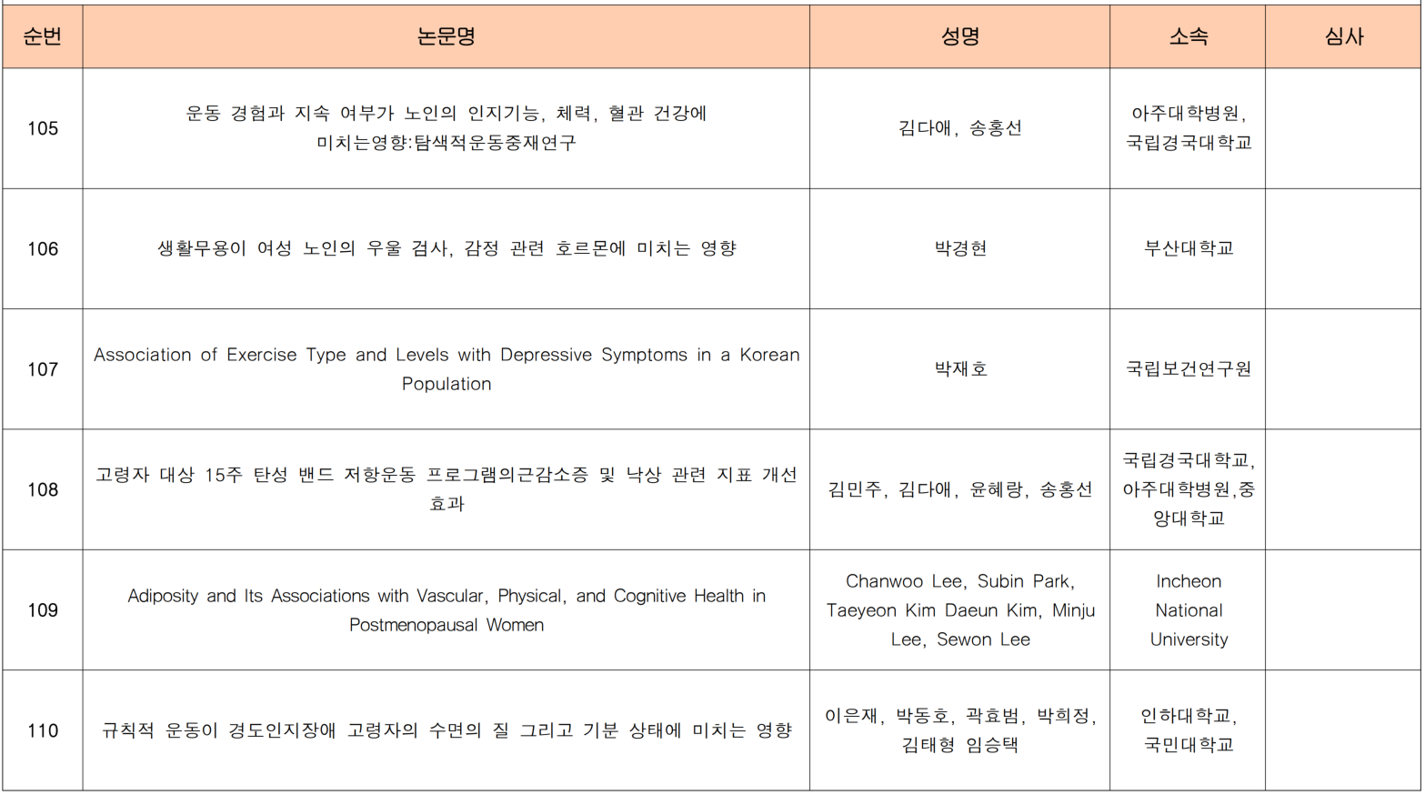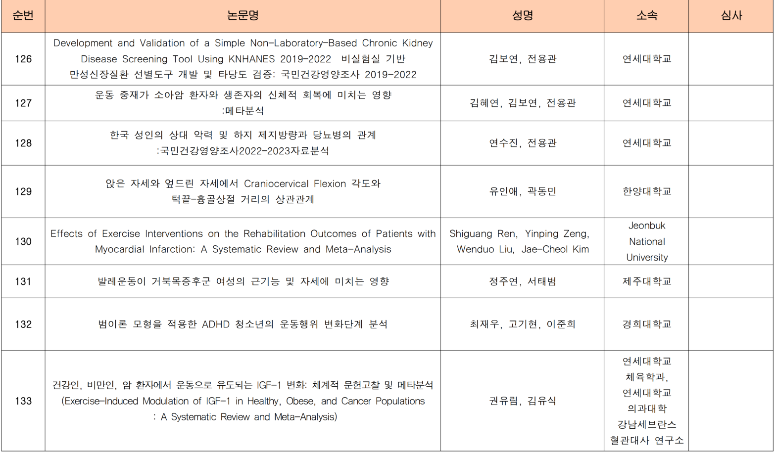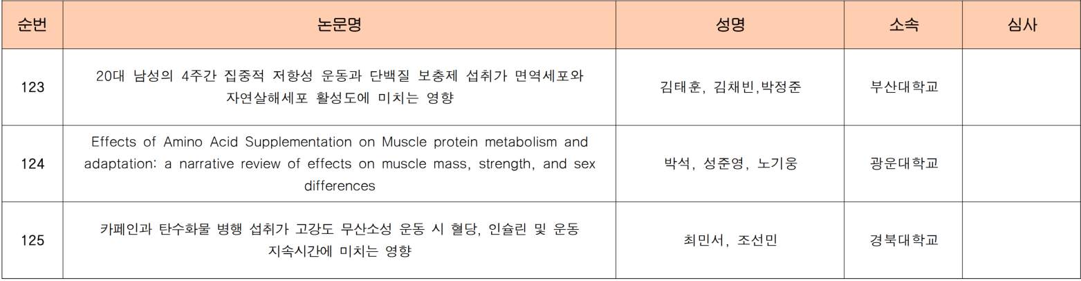 2.3. 전국체전기념 학술대회 : 18일(토) 한국운동생리학회 포스터 부착 번호 안내